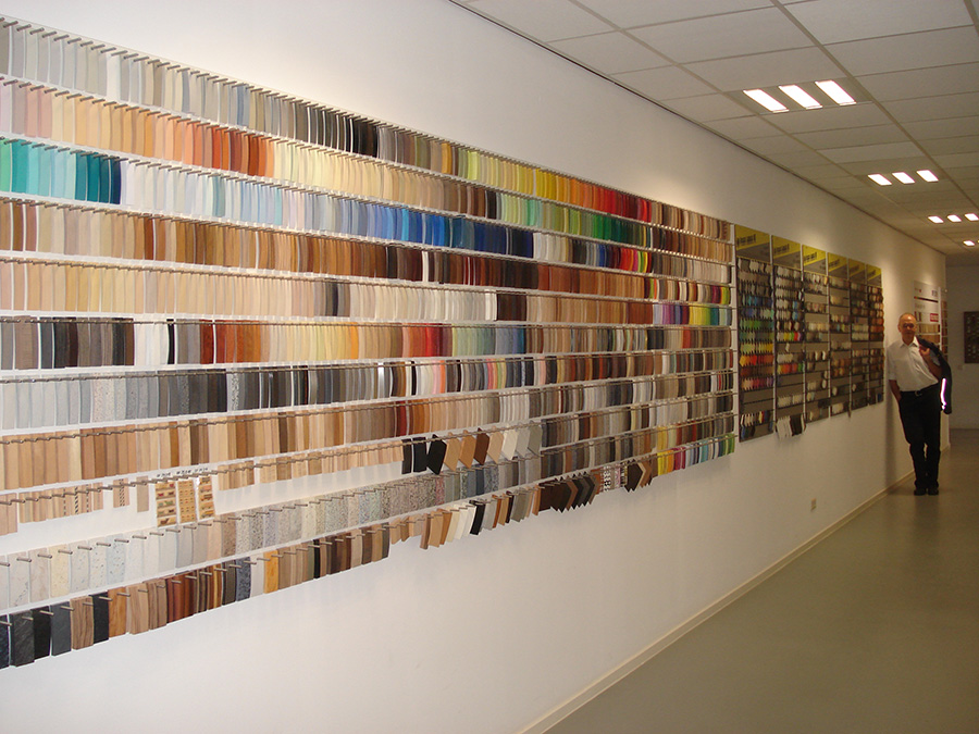 It's a long way from Henry Ford's color choice of black only, to the sample wall of colors in INTOS factory! |