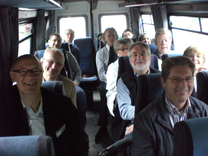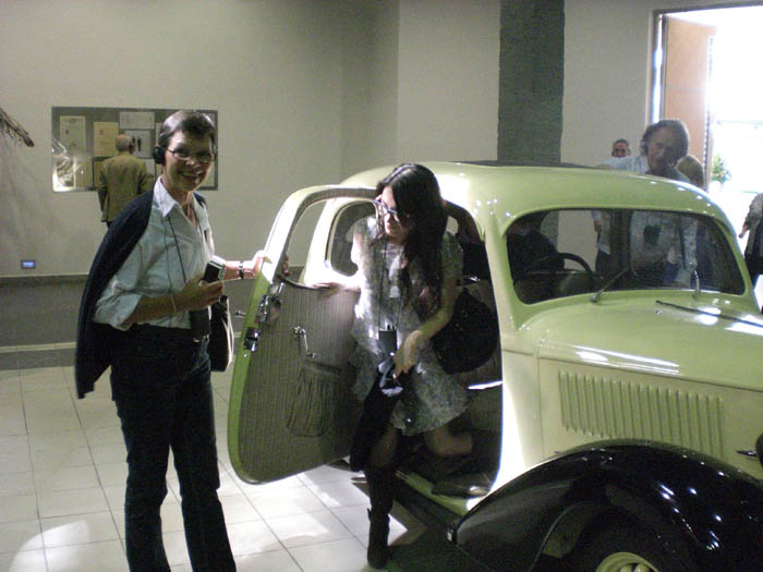 Visit to the highly modern Skoda factory. But first Anna of the ISO Secretariat demonstrates an old-timer for Sophia Zhao of CEMU, Shanghai. The doors are clever, eeh? |