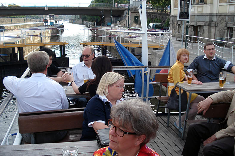 Yvette Kramps, AVA Products and husband Tony, new ISO vice president from Holland, on the good ship Calypso in the locks of Prague, going down the river. Shopfitting is fortunately going up! |
