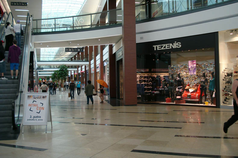Interior of Galeria Harfa in East Prague, picking up after the first half year. A spectacular Dinosaur Park just opened at the top floor which is the largest open air roof we have seen on a shopping mall |