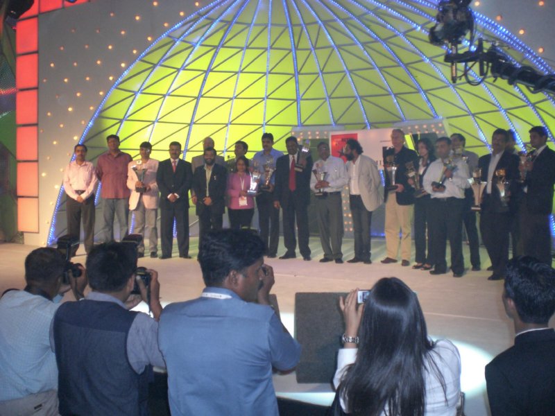 Secretary General of ISO, Preben Bailey hands over the Trophé to Kishore Biyani - India's largest retailer.